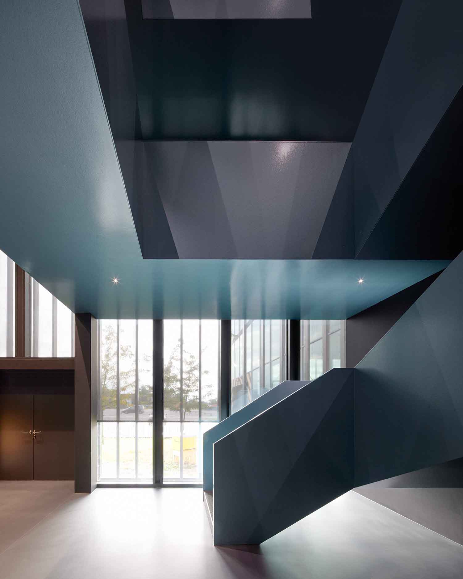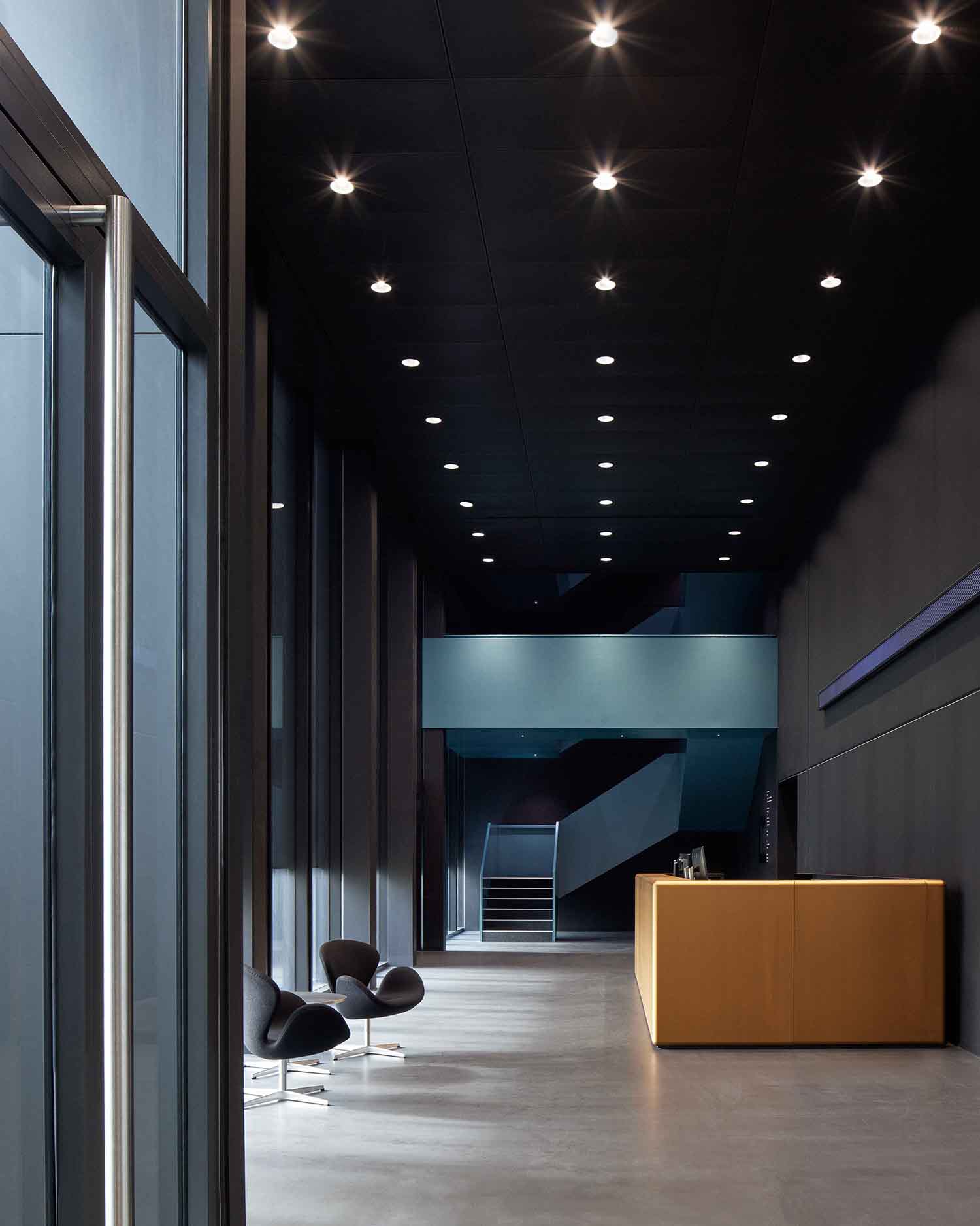 Die Schelling Anlagenbau GmbH ist ein seit 1917 bestehendes internationales Unternehmen und führender Maschinenhersteller im Bereich von vollautomatischen Aufteilanlagen für Holz-, Kunststoff- und Metallplatten. Die bestehende Situation ist geprägt durch ein über Jahrzehnte gewachsenes Konglomerat von firmeneigenen Werkshallen mit großer Differenziertheit in Struktur und Ausdruck. Nach dem Abbruch des ehemaligen Verwaltungsbaus und einer alten Werkshalle wird das neue Headquarter als sechsgeschossiges Passstück zentral zwischen die unterschiedlichen Hallenstrukturen positioniert. Die Gebäudehöhe und die klare Struktur des Volumens verleihen dem Unternehmen eine neue Identität durch einen starken und selbstbewussten Auftritt. Das Erscheinungsbild des Gebäudes wird bestimmt durch Fassadenkonstruktionen aus Metall und Glas. Eine Struktur aus unterschiedlichen Rahmenelementen gliedert das Volumen in zwei Bereiche: eine Sockelzone, welche sich mit den Hallenstrukturen verbindet und einen dreigeschossigen kronenartigen Aufbau mit allen Bürobereichen der Zentrale. Die Fassadenthematik gibt dem Unternehmen ein architektonisches Gesicht und übersetzt subtil die Produktergebnisse von Flächenelementen und deren unterschiedlichen Aufteilungen. Ein eingeschnittener Innenhof belichtet die zentralen Bürozonen. Kurze Wege zwischen Konstruktionsabteilung und Werkshalle garantieren effiziente Abläufe.